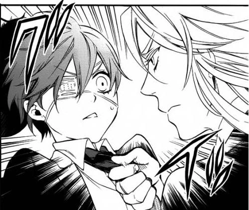 Ciel then energetically states that he is looking forward to the game, but it will be difficult to play seriously against your friends. Herman replies that a real friend will never play easily against another friend in a serious competition. Ciel then mentions that he has such a friend in Purple House, Derrick Arden. His statement instantly silences the P4. Gregory then darkly asks if he mentioned Derrick.[33] When Ciel inquires further about his transfer to Purple House—which is known for its members' unique talents—, the P4 each give different answers for his special ability. They eventually end the discussion by insisting that the principal authorized his transfer, and the headmaster's word is absolute.[34]
