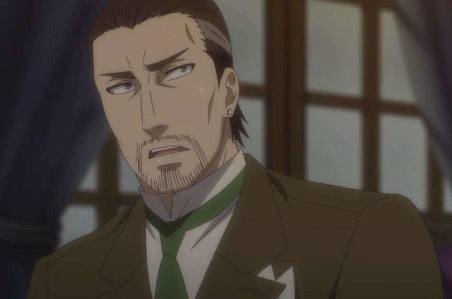 While Jeremy implements a plan to catch Patrick's killer, Karl and the rest of them convene in his room and wait. Tanaka appears at the door to announce that they were successful in capturing the killer, whom of which Jeremy reveals to be a snake. They reason that the snake must have been smuggled from Africa, which shifts the attention to Karl, who specializes in African trade. Jeremy asserts that alibis do not worth much; according to Jeremy, Georg was in cahoots with someone and had initially faked his death with a substance in an ampule he threw into the fire—however, Georg was actually killed later by the person who had killed Sebastian and retrieved the ampule from the fire. The said person, then, attempted to destroy the evidence, and Ciel states that it might be found in Karl's hearth. Grimsby demands the evidence and searches the hearth. They, then, discover glass shards, in which Jeremy reassembles to the ampule. Grimsby aggressively proclaims that Karl is the murderer, in spite of the latter's fierce denials. Ciel, then, explains Karl's possible motive: originally, Ciel's Funtom Corporation and Rose, a major company in the diamond industry, were supposed to cooperate to generate a successful jewelry business with top-notch, superior technology; however, the autocratic president, Mr. Rose, was murdered just recently, and the plan was put on hold—if the plan were to take effect, the profitability of Karl's company would have been thwarted and damaged, so it is logical to assume that Karl eliminated Mr. Rose, and then conspired to get rid of Ciel as well.[22]