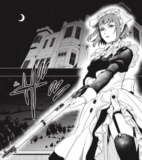 Mey-Rin, although clumsy and ungainly as a maid,[22] remains an invaluable servant, for she is an exceptional sniper who guards Phantomhive Manor at night and dispatches enemies. She can discern far into the distance and aim and shoot with impeccable precision.[23] She prefers not to use a scope, keeps an abundance of rifles on the rooftop of the manor to reduce reload time,[24] and expertly wields high-powered rifles, handguns, and other firearms.[25]