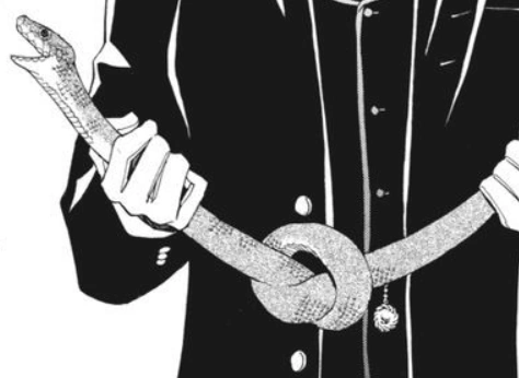 The snakes are Snake's companions and footmen of the Phantomhive household.[1] Although Snake has dozens of snakes,[2] only nine usually speak through him.