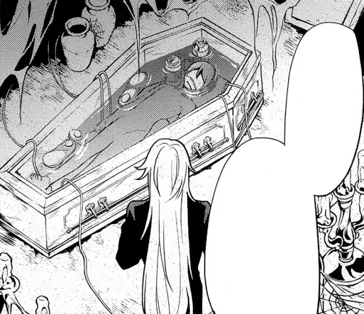 Sometime later, Undertaker idles while "Ciel" is being replenished with blood. Polaris enters and informs them that the blood factory in the north at Heathfield Manor has been dismantled and that Chris Heathfield has been taken into custody.[73]